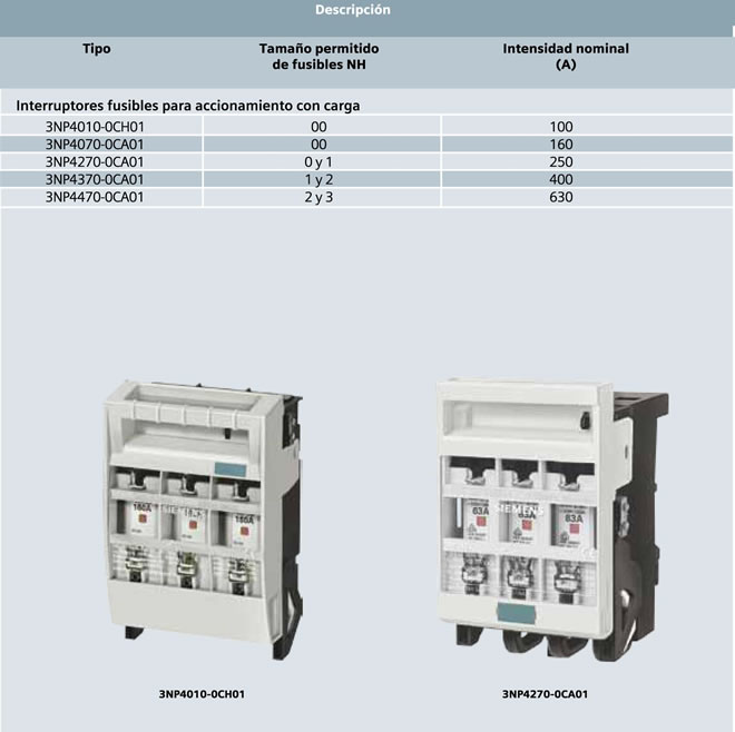 Los interruptores-seccionadores fusibles 3NP permiten conectar y desconectar de forma segura, a los consumidores eléctricos conectados en serie que se encuentran bajo carga, independientemente de si el interruptor-seccionador se alimente por arriba o por abajo.